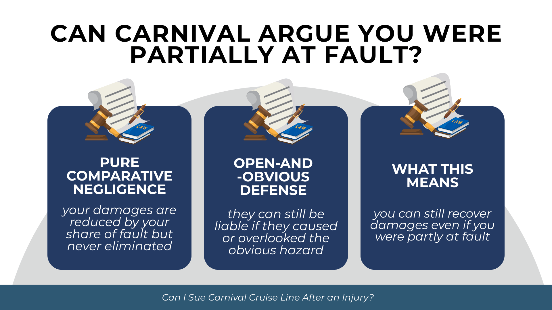 Carnival will likely argue that your own conduct contributed to the injury. Understanding how maritime law handles shared fault is essential to evaluating your claim.