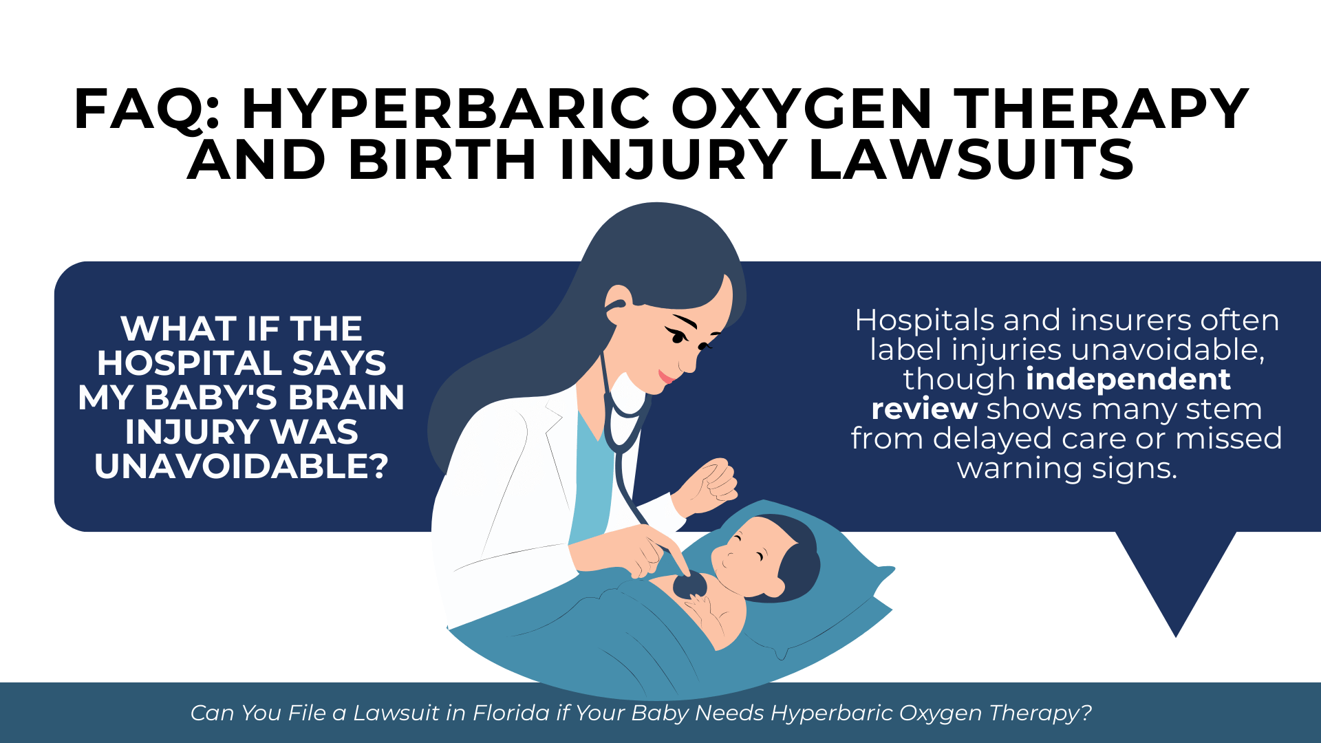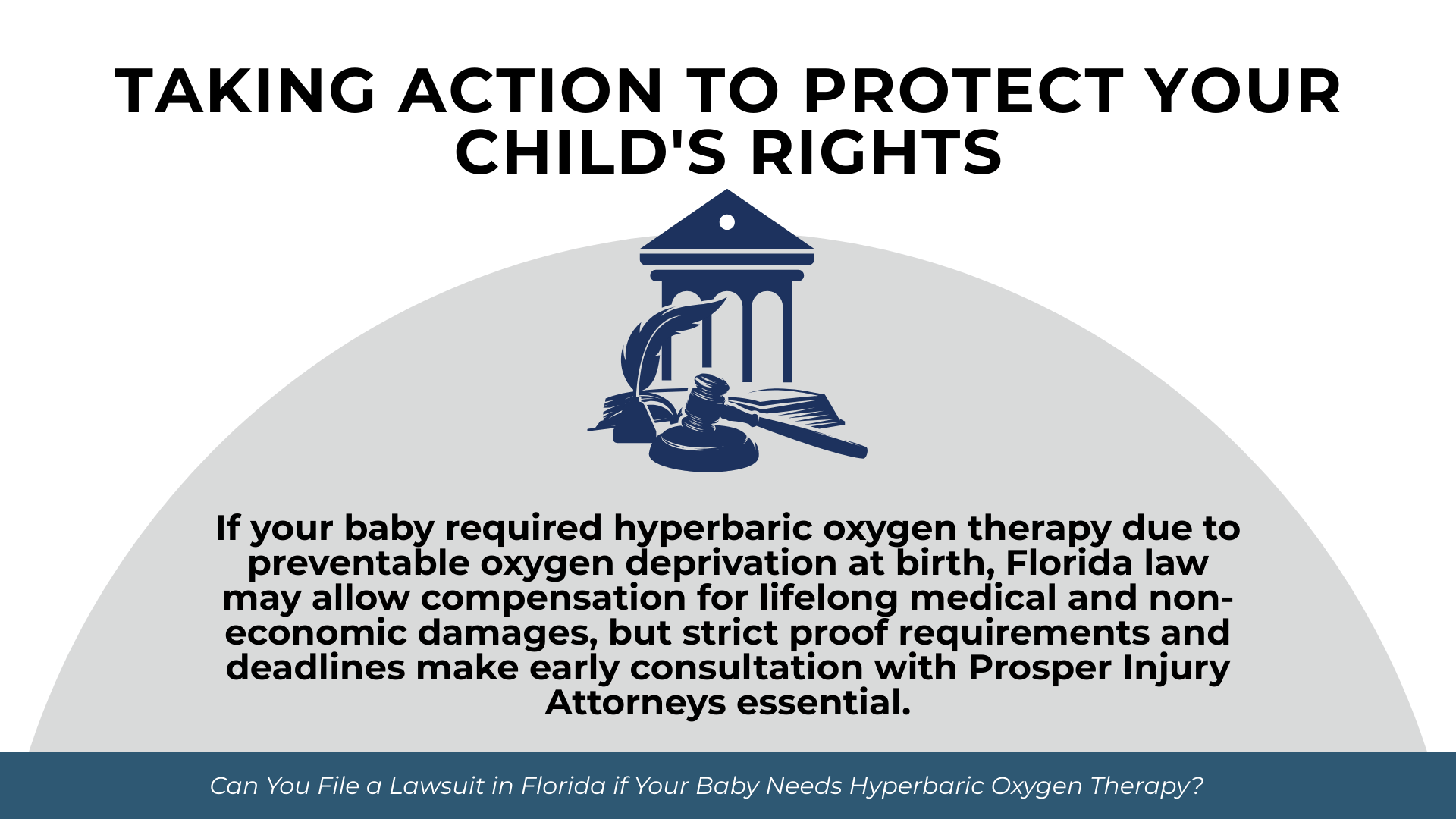 The answer depends on why your baby needs HBOT. If oxygen deprivation during labor and delivery caused brain damage that now requires hyperbaric treatment, you may have grounds for a medical malpractice claim. Florida law allows families to pursue compensation when healthcare providers fail to meet the standard of care and that failure injures a child.