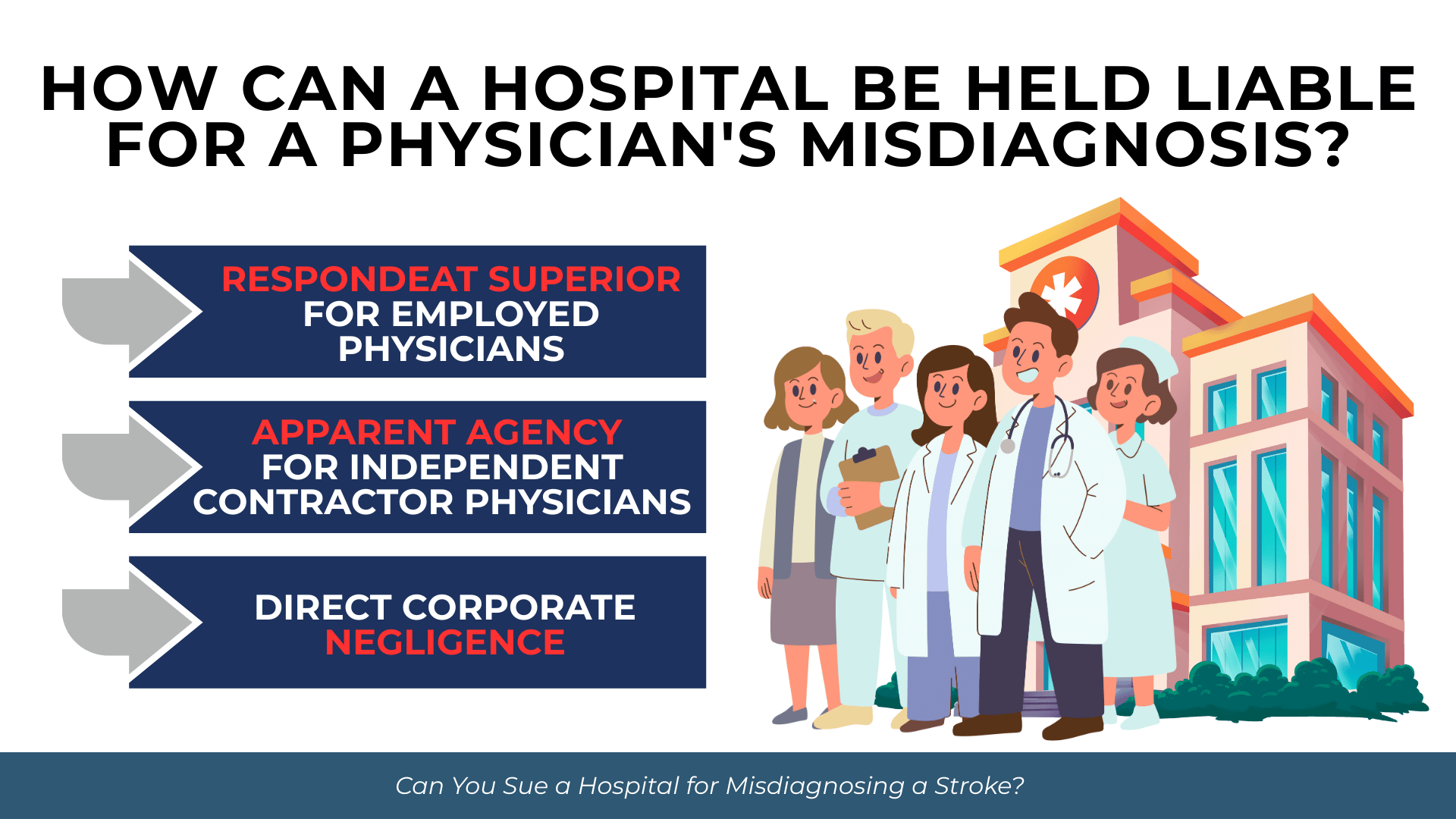 If a hospital negligently credentialed a physician with a history of diagnostic failures, or if systemic failures in emergency department protocols contributed to the misdiagnosis, the hospital itself may be directly negligent. This theory does not depend on establishing an employment or agency relationship with the misdiagnosing physician.