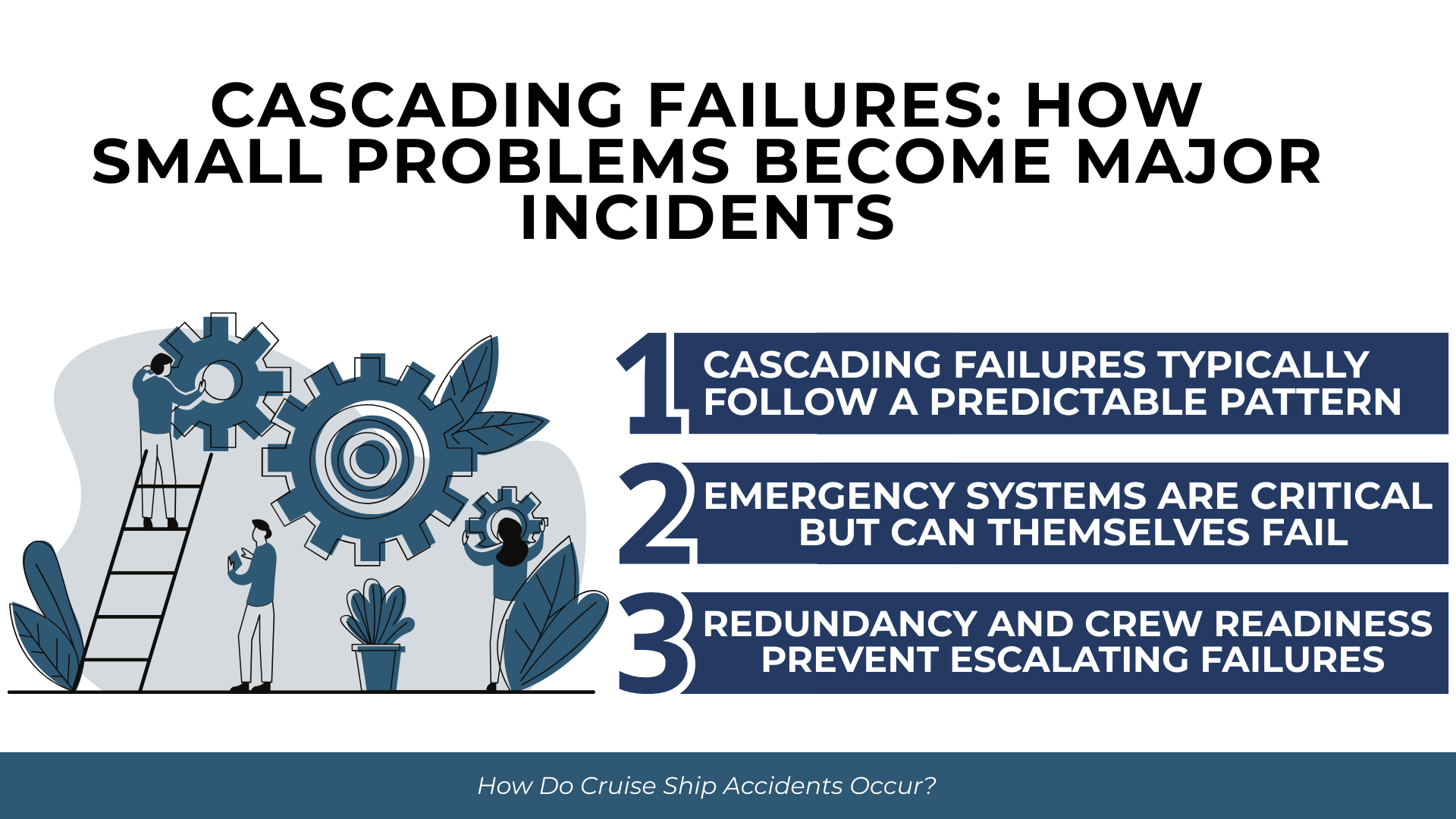 Most major cruise ship incidents involve a sequence of escalating issues rather than a single catastrophic failure. Understanding these failure chains reveals how preventable problems become disasters.
