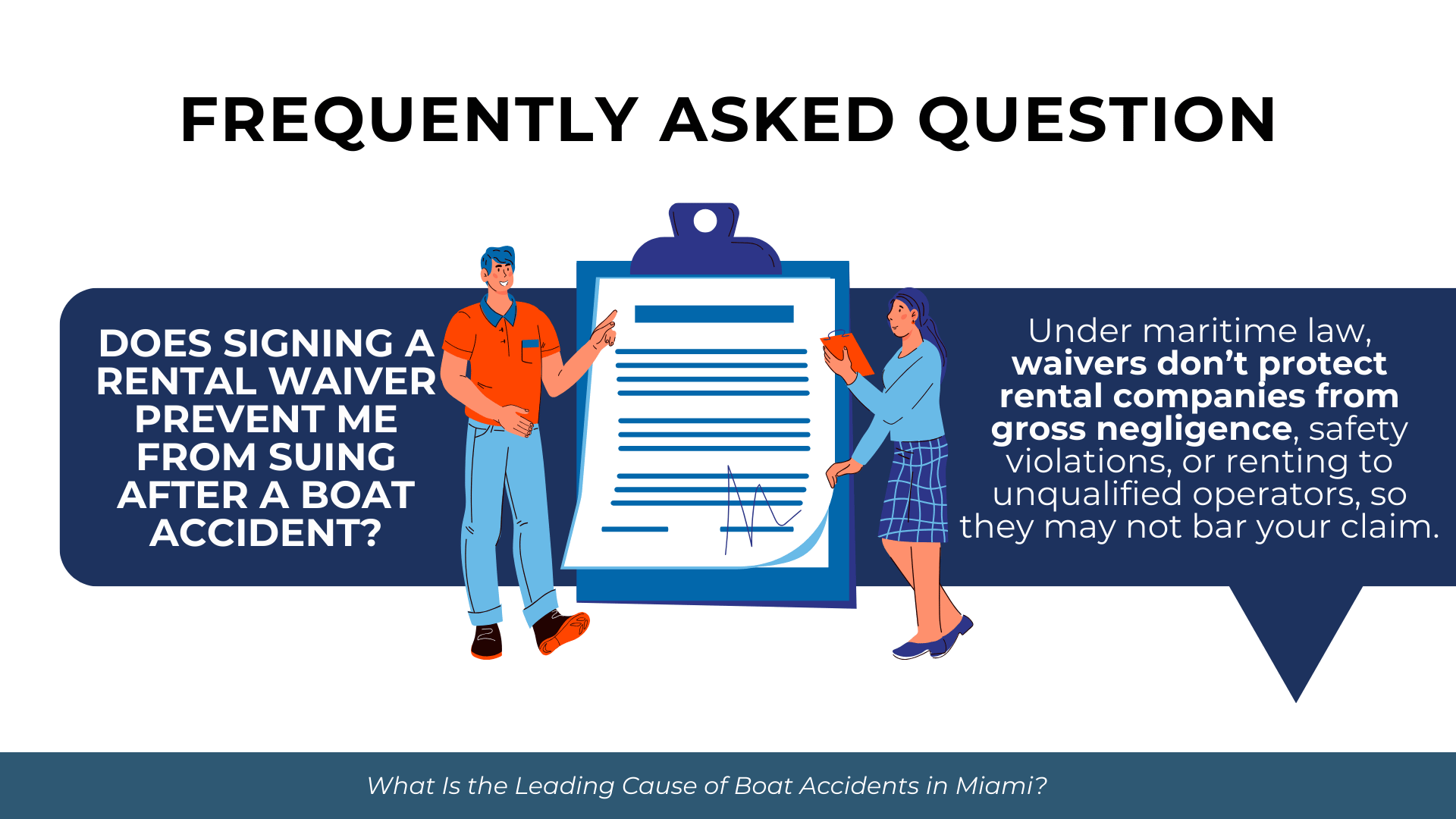 Waivers have limits under maritime law. A waiver cannot protect a rental company from liability for gross negligence, recklessness, or violations of safety regulations. If the company failed to provide adequate instruction or rented to an obviously unqualified operator, the waiver may not bar your claim.
