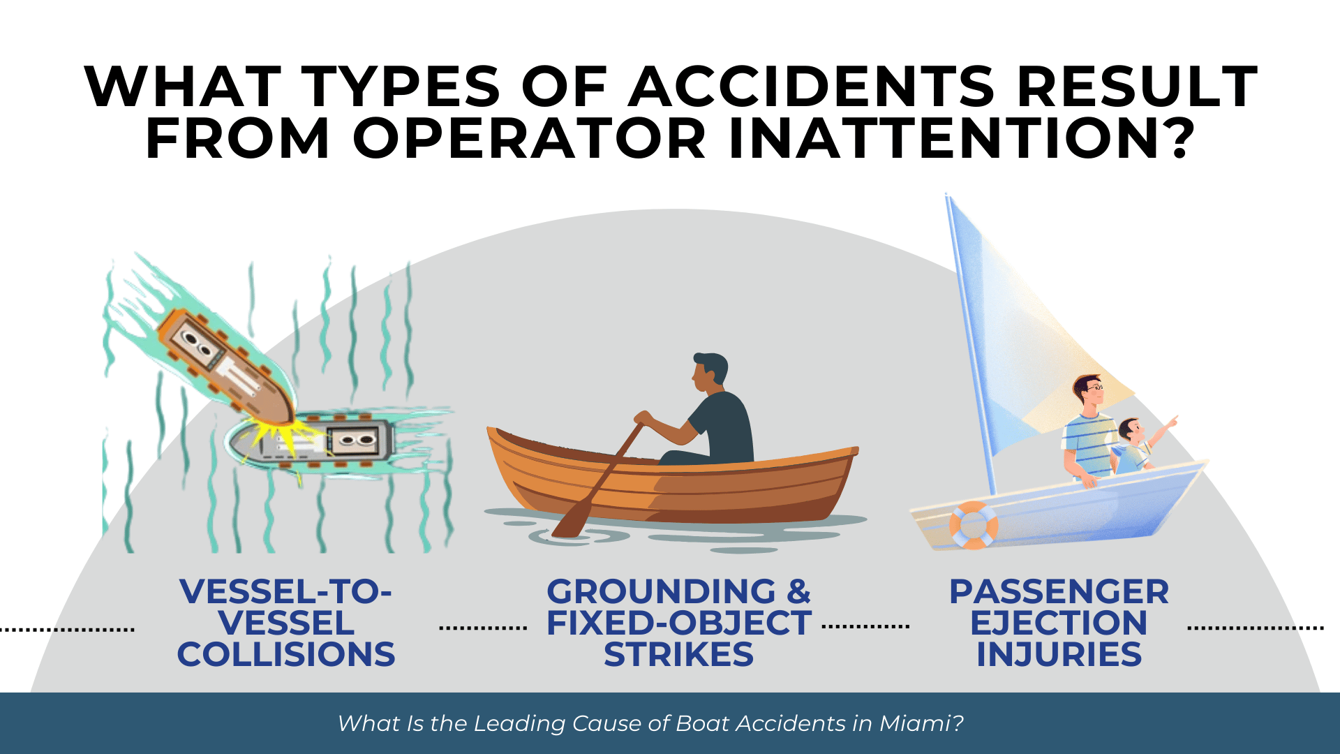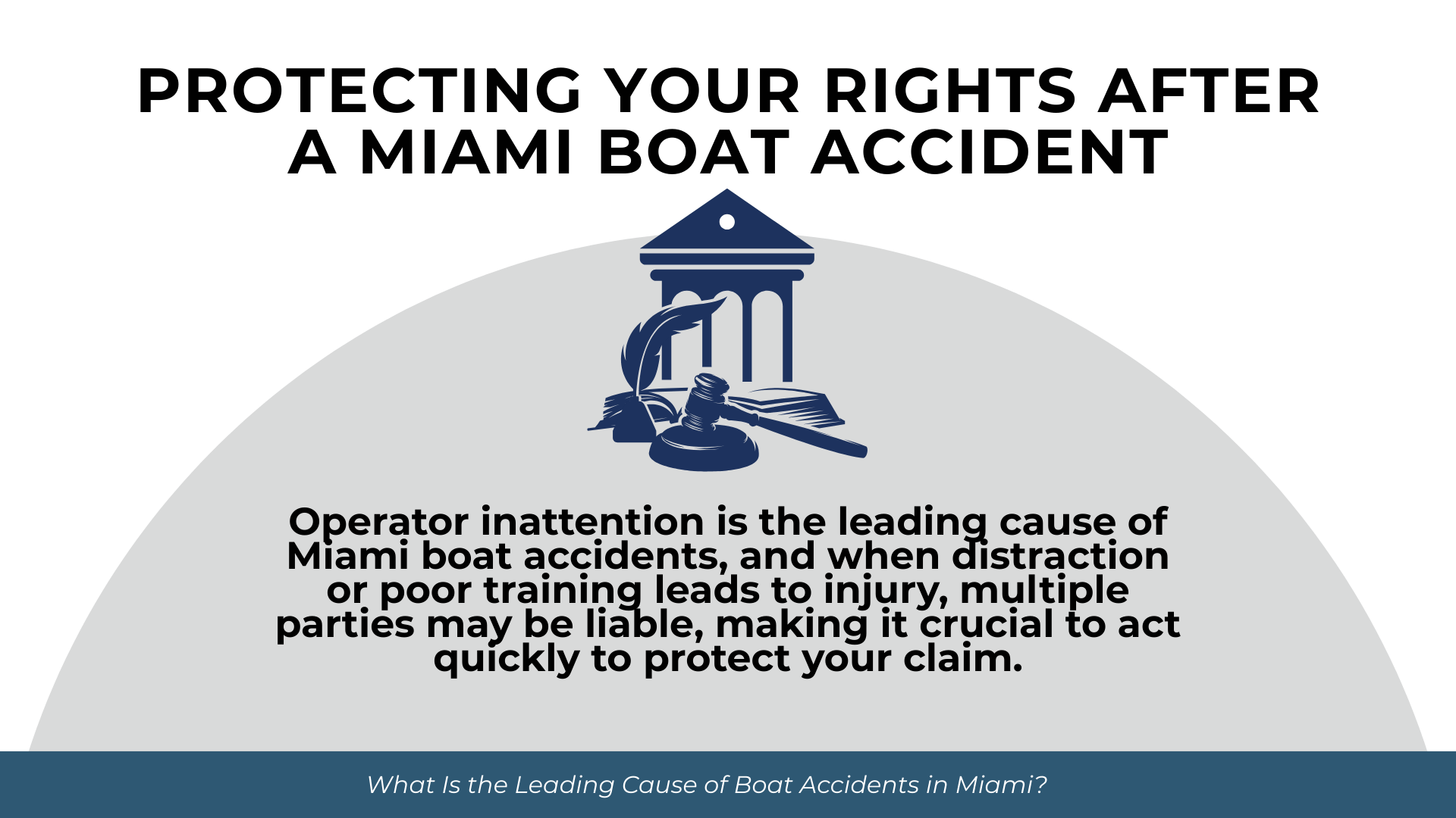 The answer is consistent across accident data and investigation reports: operator inattention, also called failure to maintain a proper lookout. This single factor contributes to more boating accidents in Miami than any other cause.