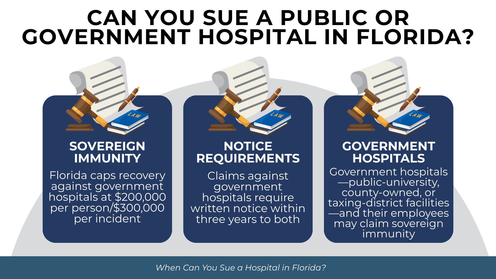Suing a public hospital in Florida involves additional hurdles and limitations not present in claims against private hospitals. Florida has waived sovereign immunity for tort liability, but only to the extent specified in Fla. Stat. § 768.28.