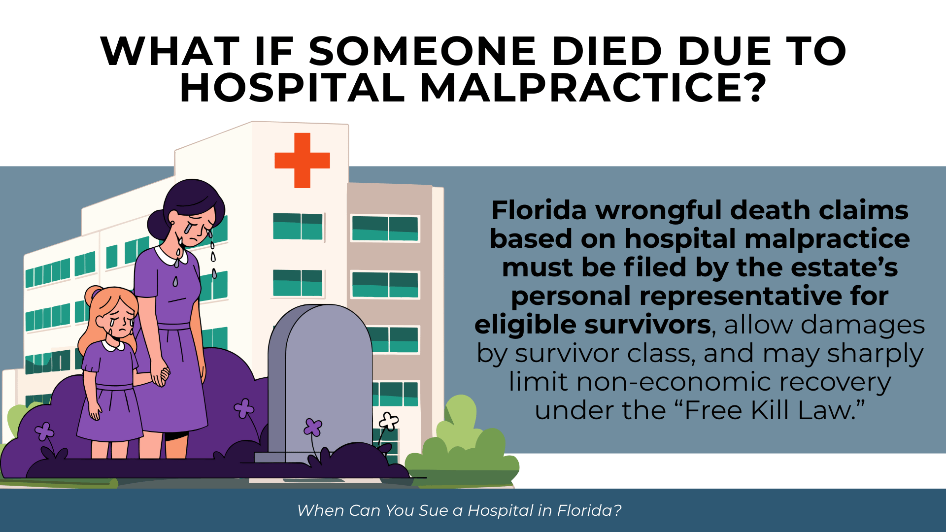 When hospital malpractice causes death, Florida’s Wrongful Death Act creates a statutory right of action for survivors. These cases involve additional procedural requirements and, in some circumstances, significant limitations on recovery.